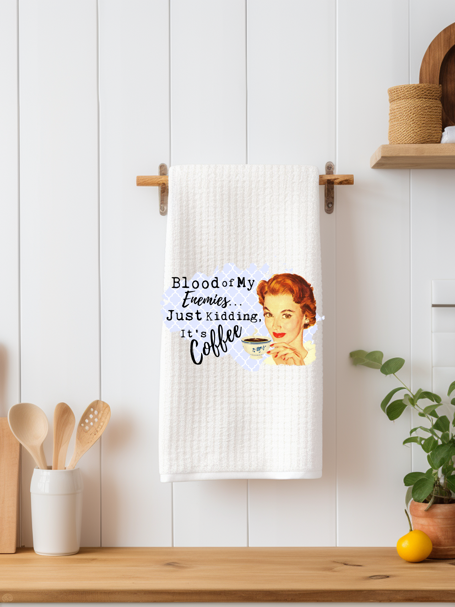 Blood of My Enemies Just Kidding it's Coffee Snarky Kitchen Towel Dishtowel
