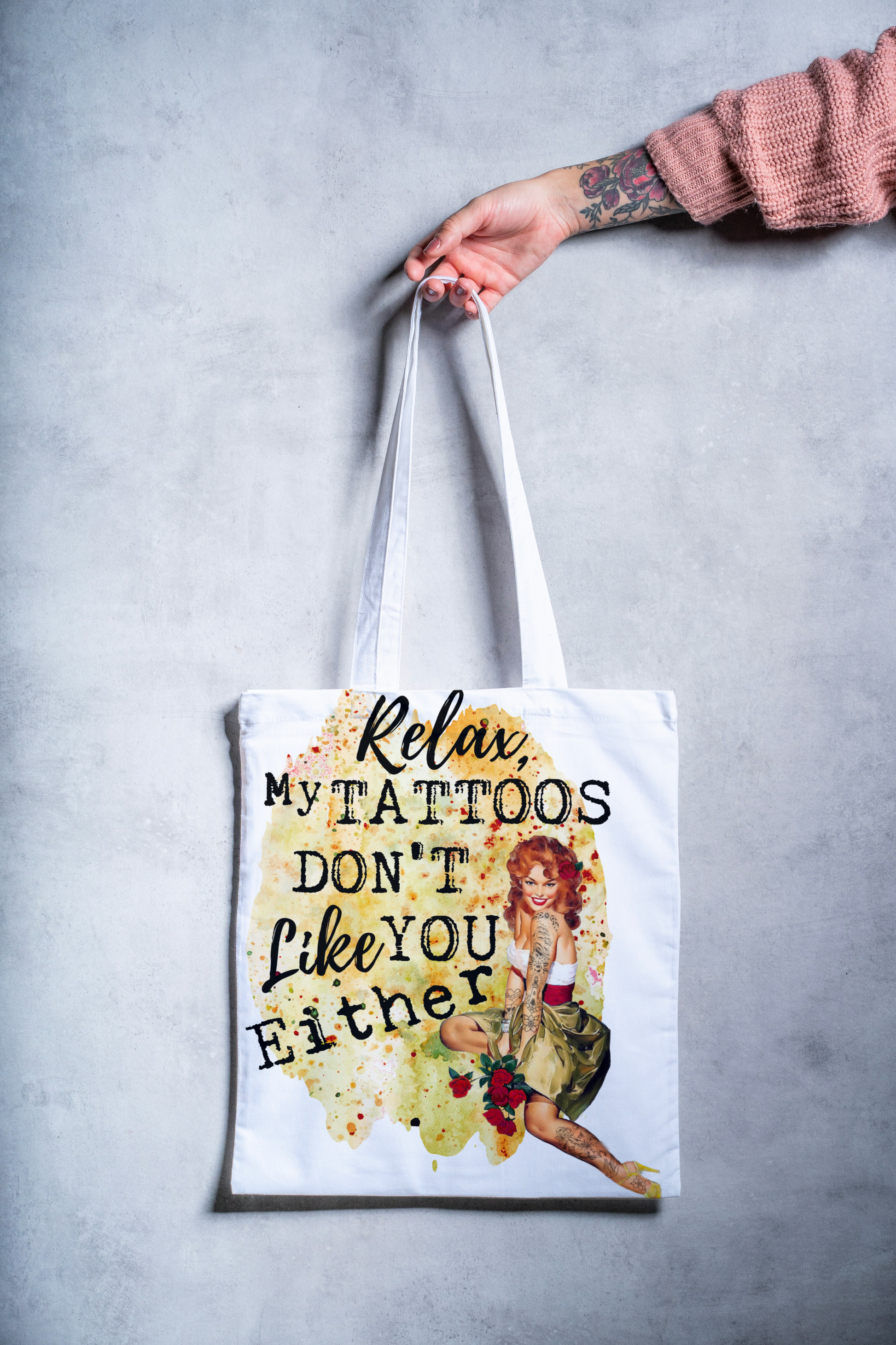 These canvas and polyester bags are light weight but heavy duty and come with a printed snarky image of your choice. They measure approximately 13" x 14" plus straps and are hand washable. Great for grocery shopping, taking to the office or Library.